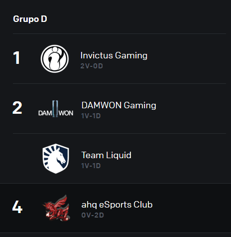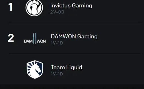 DAMWON ahora iguala a Team Liquid en el segundo lugar del grupo que es liderado por el actual campeón del mundo, Invictus Gaming, luego de que cada equipo ya disputara dos partidas.