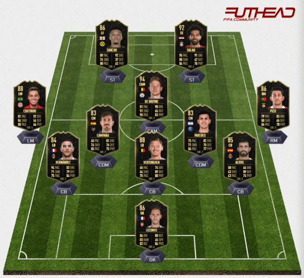Cabe destacar también a cartas como la de Phillipe Coutinho, con 88 de valoración luego de su triplete ante el Werder Bremen, y Jadon Sancho, con 86, luego de la victoria ante el Mainz por la Bundesliga. En la defensa, Jan Vertonghen suma 88 de valoración luego de darle la victoria al Tottenham en el último minuto y un Theo Hernández de 84pero con 94 de ritmo como lateral izquierdo.