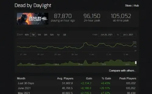 A pesar de haber sido lanzado en 2016, el 2021 parece ser el año de Dead by Daylight. Aunque siempre fue algo popular entre los fanáticos del género, y hasta logró cultivar sus propios fans de culto, podría considerarse que ahora “explotó“. Lo decimos porque esta semana, Dead by Daylight llegó a los más de 105.000 jugadores simultáneos en Steam.