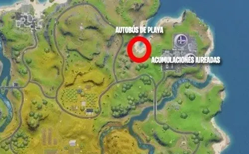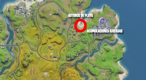 El Autobús de Playa, al igual que Alquileres Arcoíris, no es una ubicación muy visitada por los jugadores debido a su ubicación en el mapa de Fortnite. La encontrarás al oeste de Acumulaciones Aireadas, como puedes ver a continuación: