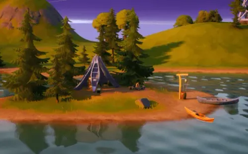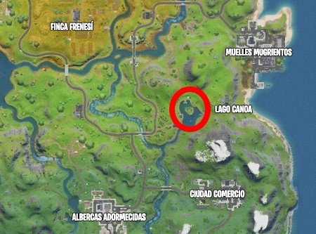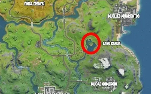 Finalmente, el último lugar en el que deberás bailar para completar el desafío es el Lago Canoa. Lo encontrarás al oeste de Muelles Mugrientos. El Lago Canoa encierra una pequeña isla en el sector este mapa de Fortnite.