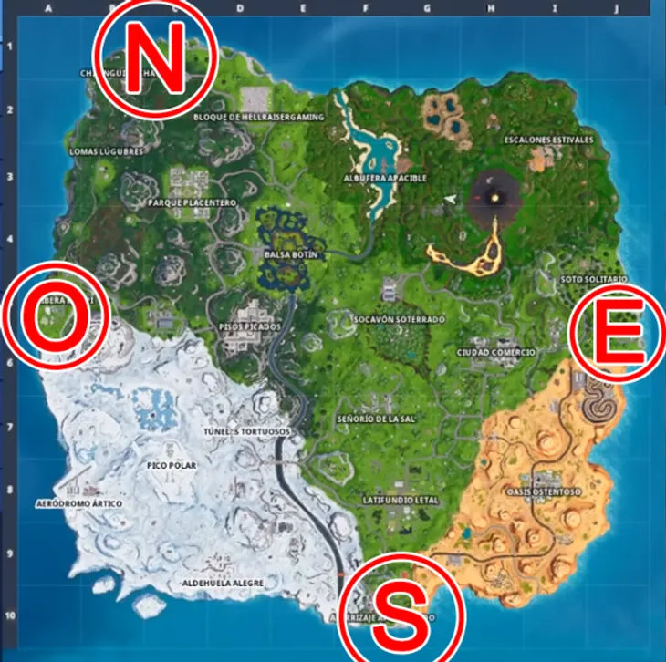 Esos son los cuatro puntos cardinales más alejados de la Isla de Fortnite. Al visitar todos ellos completarás el desafío. Recuerda que puedes ver el resto de los desafíos y cómo completarlos en la siguiente guía.