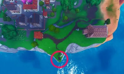 El punto más al sur de la Isla de Fortnite se encuentra al continuar por Aterrizaje Afortunado hasta el extremo de la Isla.