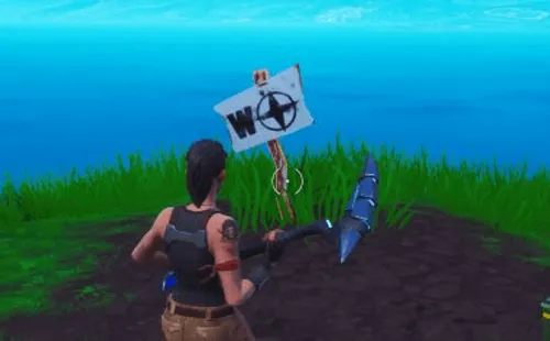 El punto más al Norte de la Isla de Fortnite se encuentra en una elevación al norte de Chiringuito Chatarra, completarás esta parte del desafío al encontrar el siguiente cartel.