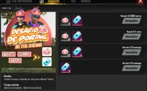 Del 11 al 15 de marzo podrás completar los siguientes desafíos especiales para obtener Tokens de Poring y Tickets Diamante Royale, los cuales luego podrás intercambiar.