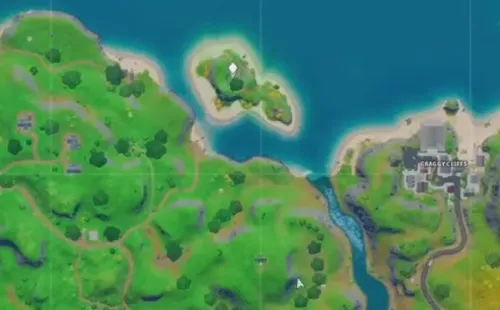 La ubicación a la que debes dirigirte es a la pequeña isla al norte de Parque Placentero, que aparece en el mapa de la siguiente manera: