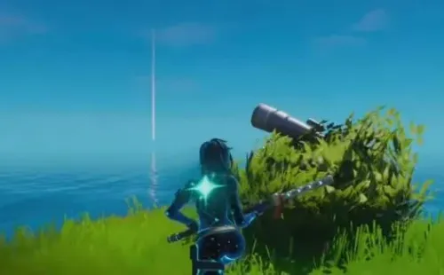 Dirígete a la pequeña isla ubicada al norte de Parque Placentero, encontrarás un telescopio junto a un arbusto, como puedes ver en la siguiente imagen: