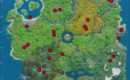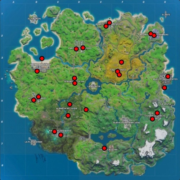 Hay varios carteles distribuidos por toda la isla de Fortnite, aunque a continuación te dejamos un mapa con la ubicación de los que han sido encontrados hasta el momento, aunque sólo necesitarás desfigurar tres para completar el desafío: