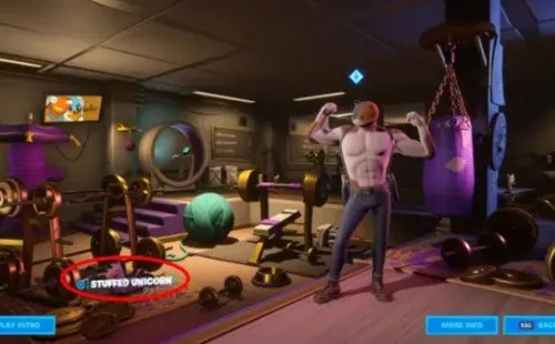 El primero de los desafíos de esta semana es encontrar el unicornio de peluche de Deadpool, el cual ha sido registrado en la habitación del agente Meowscles. Este peluche se encuentra frente a dos pesas de oro en el suelo de la habitación, a la izquierda de la misma.
