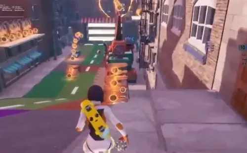 El tren elevado se puede encontrar en la tercera pendiente, justo al pasar por las dos gastronetas en una curva. Necesitarás ganar velocidad, mantenerte a tu izquierda y usar la trampa para subirte a un balcón. Este te permitirá acceder a una segunda rampa para llegar a donde se encuentra el tren elevado.