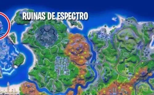 Si llevas jugando Fortnite desde el comienzo de Capítulo 2, no será complicado encontrar las Ruinas de Espectro. Éstas se encuentran en el centro deTelliz de Tiburoncín.A continuación te dejamos el lugar exacto donde las encontrarás: