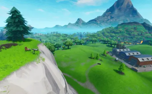 En una pequeña colina al sudeste de Túneles Tortuosos y entre tres árboles, allí puedes encontrar otro de los telescopios que se hay en el mapa de Fortnite.