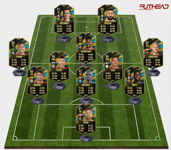 Si bien no es un equipo tan destacado como el de la semana pasada, no podemos dejar de lado a jugadores como Kalidou Koulibaly (92), Antoine Griezmann (91) y Pierre-Emerick Aubameyang (90), como los más destacados del nuevo equipo, y que podrían complementar muy bien tu equipo del FUT.