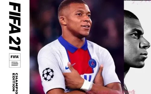 La tapa de la Champions Edition lo tiene a Mbappé con la camiseta suplente del PSG y el logo de la Champions League en una de sus mangas con el logo de FIFA 21 en vertical a la izquierda de la portada.
