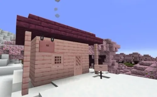 Este bioma se incluirá en Minecraft con el lanzamiento de la versión 1.20, y no sólo nos permitirá encontranos con grandes y majestuosos árboles, sino que nos introducirá a un nuevo tipo de madera de color rosado, con la cual podremos construir todo tipo de cosas dentro del juego. A continuación puedes ver cómo luce una casa con madera de Cherry Blossom: