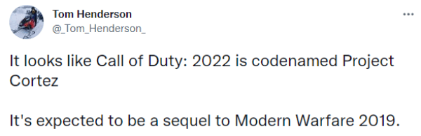 Varios filtradores, incluyendo el insider Tom Henderson y el medio Video Games Chronicle, afirmaron que la próxima entrega anual de la serie bélica será una continuación de Modern Warfare. Cabe aclarar que nos referimos al Modern Warfare de 2019, el cual fue un reboot de la subsaga.