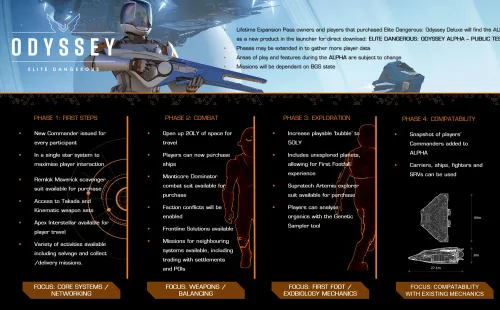 Cada participante de la alfa recibirá ahora una Cobra Mk III junto con 300.000 créditos para gastar. También recibirán acceso al Dominator, un traje diseñado para el combate. Esto viene bien ya que la Fase Dos introduce las Zonas de Conflicto, donde los jugadores pueden entrar en partidas estilo Team Deathmatch.