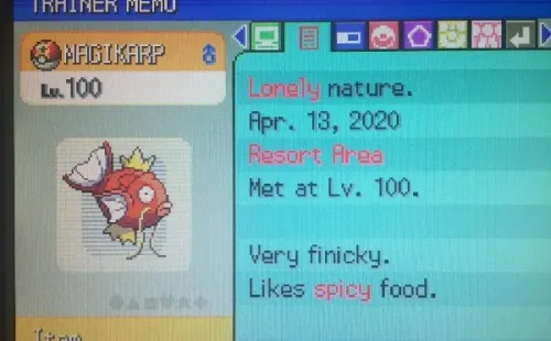 Se trata del conocido “Rey del Lago”, tal y como lo tituló su captor, el usuario FrostyLucian en Reddit, y es ni más ni menos que un Magikarp. Sí, el Pokémon galardonado como más inútil de la historia. Sin embargo, tiene una particularidad muy importante: su captor logró encontrarlo pescando en la Zona Descanso de Pokémon Platino en Nivel 100.