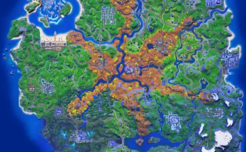 Y es que volvemos a ver una gran cantidad de tramos acuáticos separando diferentes partes de tierra, y una sección que quedó anaranjada a causa del evento de Punto Cero. En fin, sin más preámbulos, este es el mapa con que los jugadores comenzarán la nueva temporada de Fortnite: