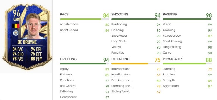 Se trata ni más ni menos que de Bruno Fernandes (97), Kevin De Bruyne (96) y Joshua Kimmich (96), que siguen la misma línea que los delanteros y ninguno de ellos alcanza la valoración máxima de 99, tal y como sí sucedió el año pasado con gran parte del TOTY.
