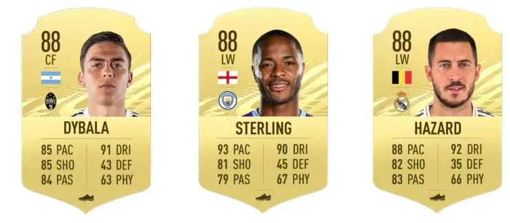 Al igual que Harry Kane, hay otros tres delanteros que contarán con una media de 88: Eden Hazard, Paulo Dybala y Raheem Sterling. Estas son sus cartas: