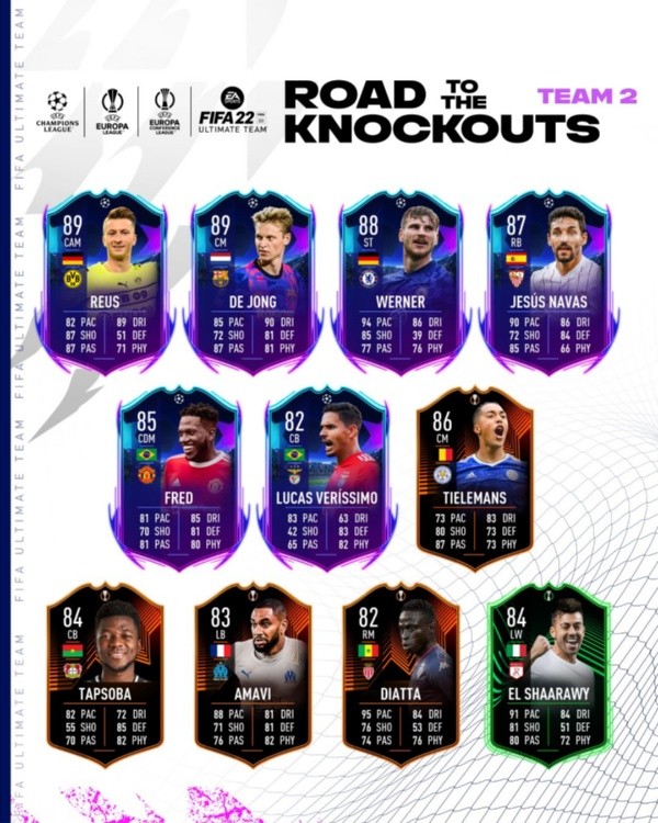 EA Sports sigue lanzando cartas para el Ultimate Team de FIFA 22 a través de sus varias líneas especiales. En este caso, revelaron el Equipo 2 de Road to the Knockouts, con figuras como Marco Reus y Jesús Navas.