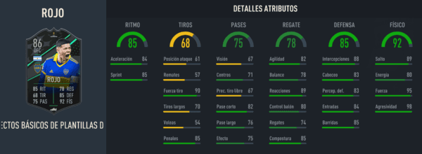Más arriba puedes ver las estadísticas de Marcos Rojo, y la realidad es que es una carta bastante interesante, si ya tienes química de Argentina en tu equipo. Sus 98 de agresión y 95 de fuerza lo harán un defensor imponente, y es una carta que si bien destaca por completo en sus stats defensivos y físicos, también tiene un ritmo competitivo para el meta actual.