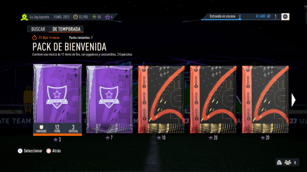 • 3 estrellas: Sobre de bienvenida.Incluye doce artículos oro (tres de ellos únicos) entre jugadores y consumibles.