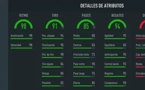 Primero analizamos la carta en sí. Mbappé POTM cuenta con 93 de media, un punto más que su primer POTM. Es la misma valoración que la que tiene su carta de Road to the World Cup, y los stats son casi idénticos. De más está decir que son muy buenos atributos, y es una carta que domina en la meta.