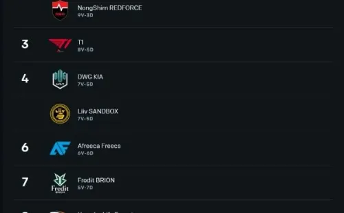 Con el triunfo ante Afreeca Freecs, T1 logró ganar por primera vez en la temporada tres series consecutivas, y ya se ubica en el tercer lugar de la tabla, con 8 victorias y 5 derrotas. Tan sólo dos equipos tienen menos derrotas en lo que va de la competencia y son los que comparten el primer lugar: Gen.G y NongShim REDFORCE(9-3).