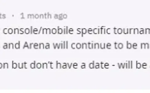 “Estaremos llevando a cabo algunos torneos en consolas y móviles en el futuro, pero la mayoría de los torneos y el Modo Arena serán mixtos”,respondían ante la cuestión presentada por los jugadores.