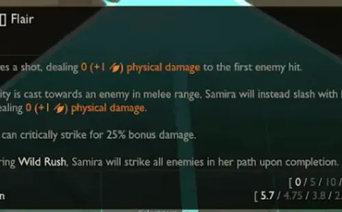 Si se lanza durante Ímpetu Salvaje, Samira golpeará a todos los enemigos en su camino hasta completar su desplazamiento.