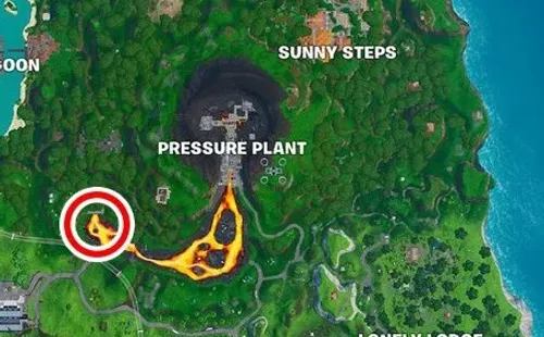 Lógicamente, será necesario dirigirnos al sector del volcán de Fortnite, una vez allí deberemos ingresar al túnel donde el cual desaparece la lava del mapa y se esconde debajo del bosque, en la siguiente ubicación: