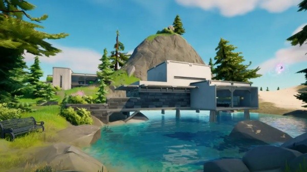 Al sur de la nueva ubicación arenosa que ocupa gran parte del mapa, Epic Games nos presentó la Casita del Cazador, un lugar entre Alameda Afligida y Albercas Adormecidas, y aunque uno pensaría que se trata de una pequeña choza, la Casita del Cazador está bastante bien equipada.
