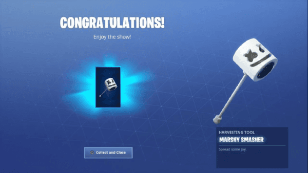 Tu recompensa no será menor, porque obtendrás el Pico temático de Marshmello, exclusivo del evento Hora del Espectáculo.