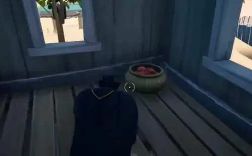 En La Huerta encontrarás un granero rojo en el sector inferior. Si subes al primer piso encontrarás una cesta entre dos ventanas, como puedes ver a continuación: