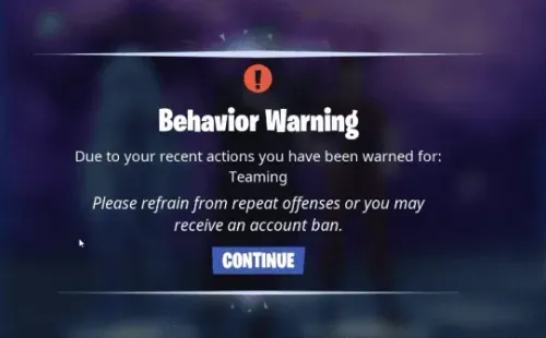 Sin embargo, algunos jugadores utilizando esta característica recibieron un mensaje sobre una advertencia por“teaming”y, repetidos mensajes de este estilo, podrían resultar en un ban de la cuenta. El mensaje decía“Debido a tus recientes acciones has sido advertido por teaming. Por favor, abstente de repetidas ofensas o podrías recibir un baneo de tu cuenta”.