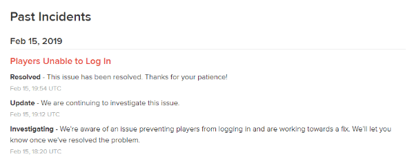 El equipo de Fortnite tomó rápidamente las redes sociales para comunicar que se encontraban analizando el problema para poder solucionarlo. Luego de un par de ingresos en su blog de estado del juego, llegó la noticia de que el error había sido solucionado. Aún así, fue más de una hora y media en la que el juego permaneció prácticamente desierto por este error.