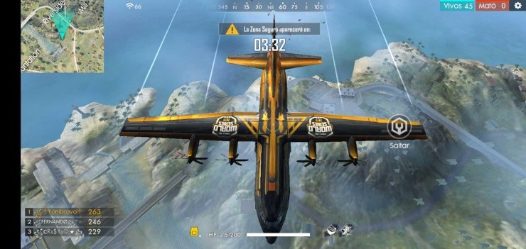 El avión que transporta jugadores dentro de las salidas ahora tiene una máscara sobre el tema deFree Fire World Series.