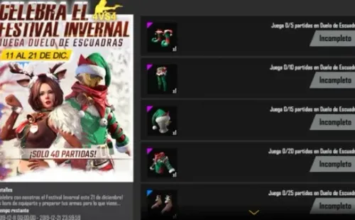 Las fiestas están cada vez más cerca y Garena te permite vivirlas en Free Fire con sus recompensas gratuitas, que se pueden obtener sólo por iniciar sesión diariamente y por jugar partidas del Duelo de Escuadras, nuevo modo de juego permanente en Free Fire.