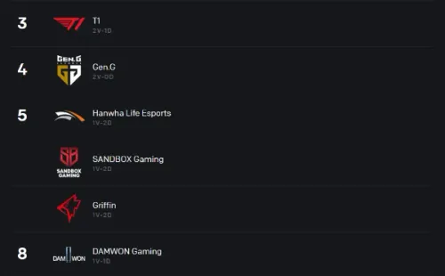 El segundo duelo también quedó en manos de DragonX que queda como uno de los líderes invictos de la LCK. junto a Afreeca Freecs, ambos con tres triunfos en igual cantidad de presentaciones y sólo podrían ser alcanzados por Gen.G, que ganó sus dos enfrentamientos y está en carrera por competir por el torneo invicto junto a las otras dos escuadras.