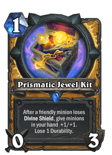 Además se introducen las Herramientas de profesión. Estas son “armas con efectos especiales en lugar de puntos de ataque”, y serán otra forma de añadir aún más dinamismo a las partidas de Hearthstone. Una de estas ya se ha revelado: es para la clase Paladín, y hace que cada vez que un esbirro aliado pierda Escudo Divino, todos los esbirros de la mano del jugador ganen +1/+1.