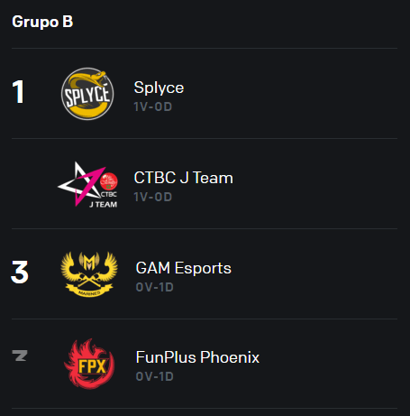 Con el sorprendente triunfo de J Team ante Fun Plus Phoenix, ambos equipos quedan como líderes del Grupo B luego del primer día de competencia.