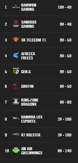 La tabla de la LCK se encuentra de la siguiente manera y SKT deberá enfrentar en su próxima presentación a Afreeca Freecs, el 3 de agosto.