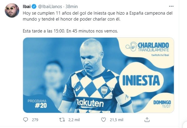 Fecha y Hora para el Charlando Tranquilamente de Ibai con Andrés Iniesta