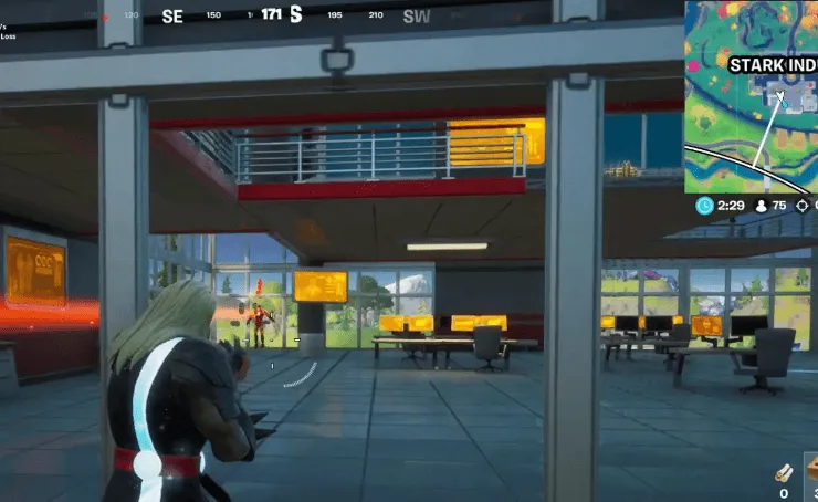 Para eliminar a Iron Man en las industrias Stark, necesitarás saber dónde está.Está en el edificio principal de Stark Industries en el lado sur de todo el PDI de Stark Industries. Encontrarás al jefe de Iron Man en el segundo piso dando vueltas.En la captura de pantalla a continuación, puede ver al jefe de Iron Man Fortnite junto con la ubicación en el mini mapa en la esquina superior derecha: