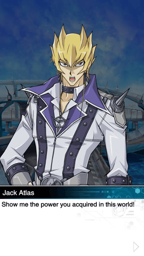 JackAtlas hace su primera aparición en Yu Gi Oh! Duel Links, en el mundo 5D’s. Aunque todavía no es un personaje jugable, podrás enfrentarlo para obtener grandes recompensas. Entre ellas el Multiple PieceGolem, un poderoso monstruo de fusión.