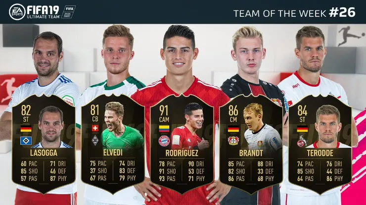 El equipo de la semana 26 de FIFA 19 fue revelado y James Rodríguez logró su tercera inclusión en lo que va de la Temporada y con una valoración de 91. El colombiano fue clave en la victoria del BayernMunichante el Wolfsburgo con un verdadero golazoy una asistencia incluidas para que el equipo bávaro reclame la cima de la Bundesliga.