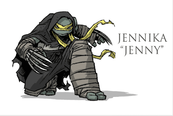 Desde hace unos meses Leonardo, Miguel Ángelo, Rafael y Donatello no están solos en su lucha ya que Jennika se sumó a ellos para combatir a sus enemigos. También conocida como “Jenny”, se convirtió en una más de la pandilla al ser salvada por una transfusión de sangre de Leonardo.
