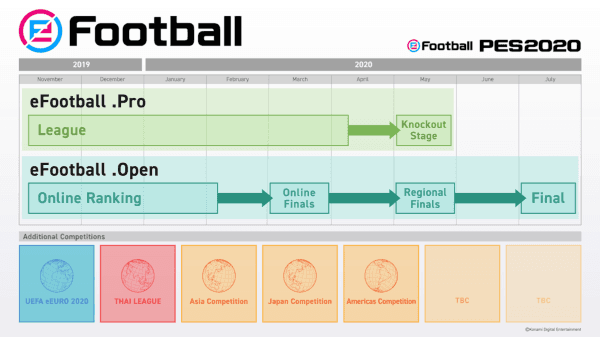 Mediante dos torneos separados, KONAMI coronará al mejor jugador del mundo de eFootball y al mejor club profesional. El primero, abierto para todos los usuarios en el nuevo modo “Matchday” será llamado “eFootball.Open”, mientras que el restante, donde se enfrentarán los profesionales que representan a los diferentes equipos de fútbol tendrá como nombre “eFootball.Pro”.